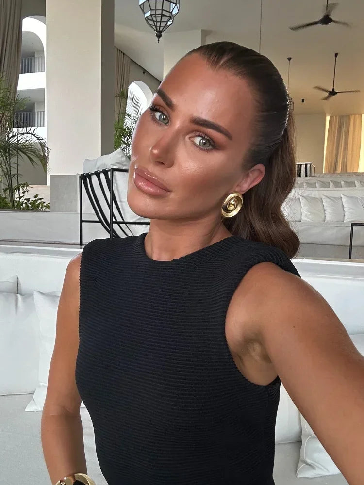 Los flecos en la falda añaden un aire de movimiento y elegancia, dando un toque de sofisticación a tu look. Gracias a las propiedades elásticas de su tejido y a su corte ceñido, se ajusta a la perfección a cualquier tipo de cuerpo, resaltando tus curvas y tu figura. Ideal para eventos especiales o salidas nocturnas, este vestido te hará lucir radiante y a la moda, resaltando tu belleza natural con un toque de sensualidad.