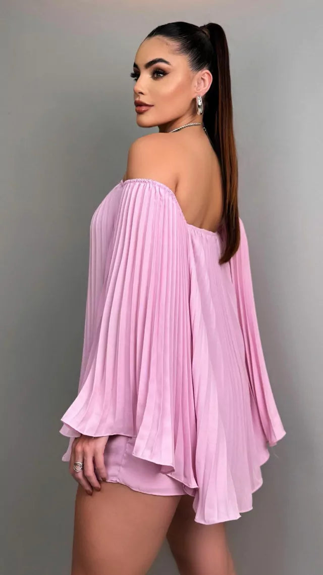 Este conjunto de blusa y short, está confeccionado en gasa plisada, un material suave y resistente que aporta comodidad y un cuidado sencillo. Además, gracias a su corte holgado y diseño plisado, se ajusta a la perfección a cualquier figura y ofrece una libertad de movimientos excepcional. Lo mejor de este conjunto es su versatilidad, ya que puedes vestir ambas prendas juntas o combinarlas por separado.
