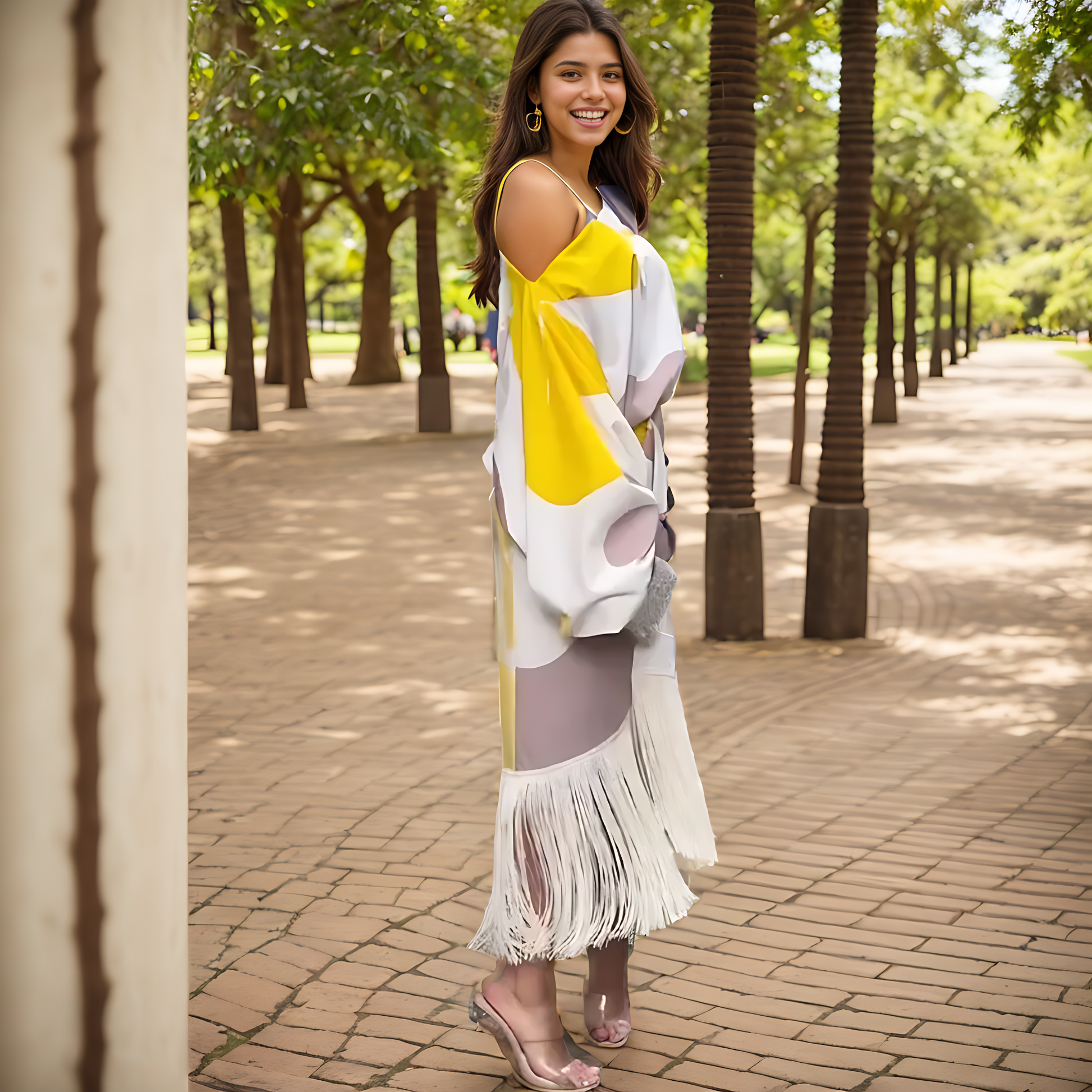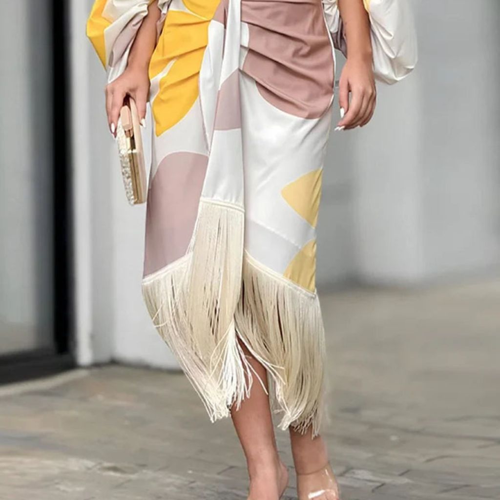 Gracias a su tejido de algodón y poliéster, es suave al tacto y resistente; además de ser fresco, lo que lo hace perfecto para usarlo en las próxima temporada. Su corte holgado y su diseño se adaptan a la perfección a ti, por lo que garantiza un ajuste excepcional a cualquier figura. Sus mangas de murciélago abullonadas junto con su falda de flecos y su lazada al frente le brindan un toque moderno y a la vez de elegancia. Triunfarás allá donde vayas.