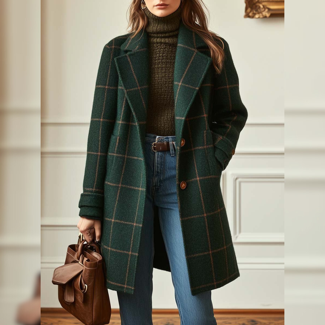 Todas conocemos esa sensación: salir de casa en una mañana fría y querer sentirnos inmediatamente elegantes, seguras y protegidas. El abrigo Valeria™ nace exactamente de esa necesidad. Su corte limpio, su diseño de inspiración sastrera y el clásico patrón de cuadros aportan una elegancia natural, perfecta para quien quiere destacar con clase sin esfuerzo.
